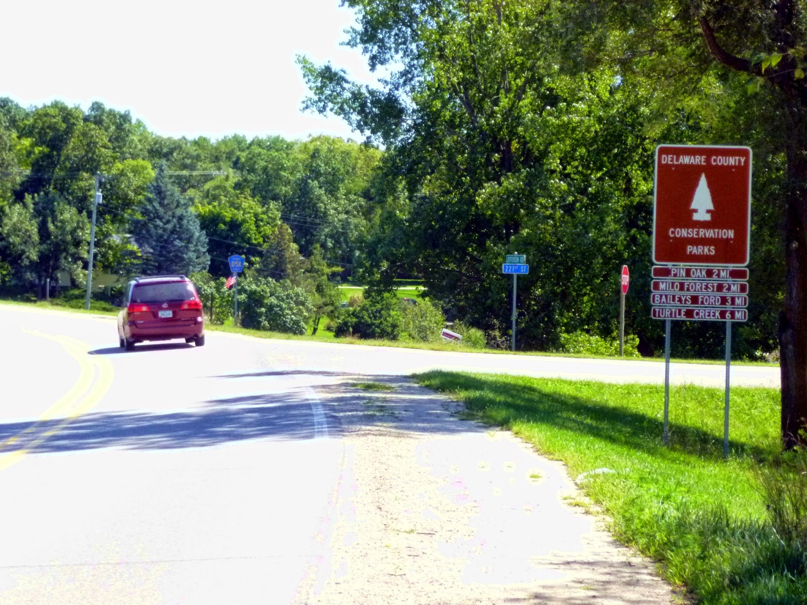 OSAGE, CHARLES CITY, NASHUA, PLAINFIELD, WAVERLY, JANESVILLE, CEDAR FALLS, WATERLOO, INDEPENDENCE, WINTHROP, MANCHESTER, FARLEY, DUBUQUE, ST, DONATUS, AND FINALLY, BELLEVUE.